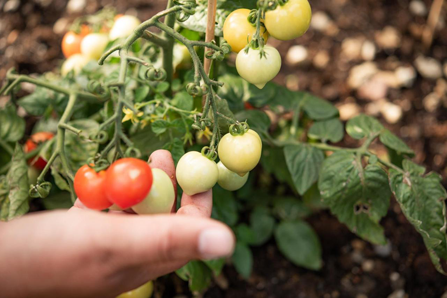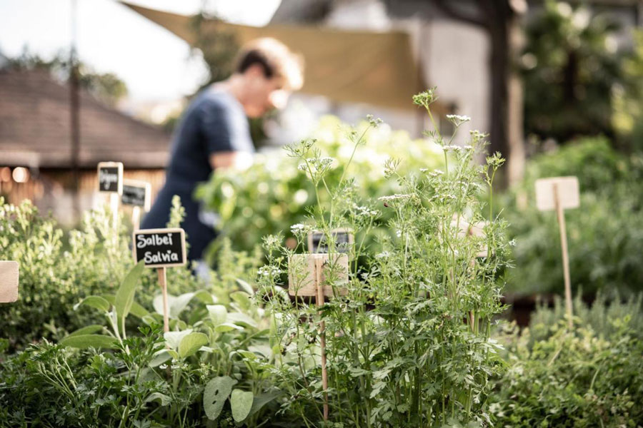 Der üppige Gemüsegarten des Hauses ist vom Frühsommer bis in den Herbst reich an Früchten und Gemüse. Er bietet reichlich Frischgemüse wie Zucchini, Tomaten, Kopfsalat, Porree, Karotten, Melanzane, Paprika und Fenchel. Auch süße Früchte wie Erdbeeren, Himbeeren, Heidelbeeren, Feigen, Zwetschgen, Kiwi und Kaki verwöhnen die Gäste. Dank Hausherrin Judiths grünem Daumen gibt es auch frische Kräuter wie Basilikum, Rosmarin, Lavendel, Thymian, Schnittlauch, Petersilie, Salbei, Majoran, Oregano, Melisse und Minze. Die Gäste können sich an frischem Obst, Gemüse und Kräutern nach Herzenslust bedienen und genießen.