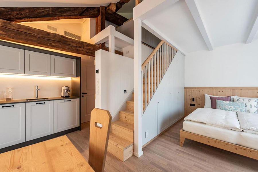 Die Appartements in Bozen sind wahre Schmuckstücke und bieten durch ihre großen Fensterfronten einen traumhaften Panoramablick. Hell und komfortabel, mit edlen Parkettböden, handgefertigten Möbeln, edlen Stoffen und liebevollen Details ausgestattet, sind diese exklusiven Ferienwohnungen ein modernes Refugium in alten Mauern.
