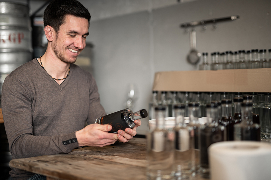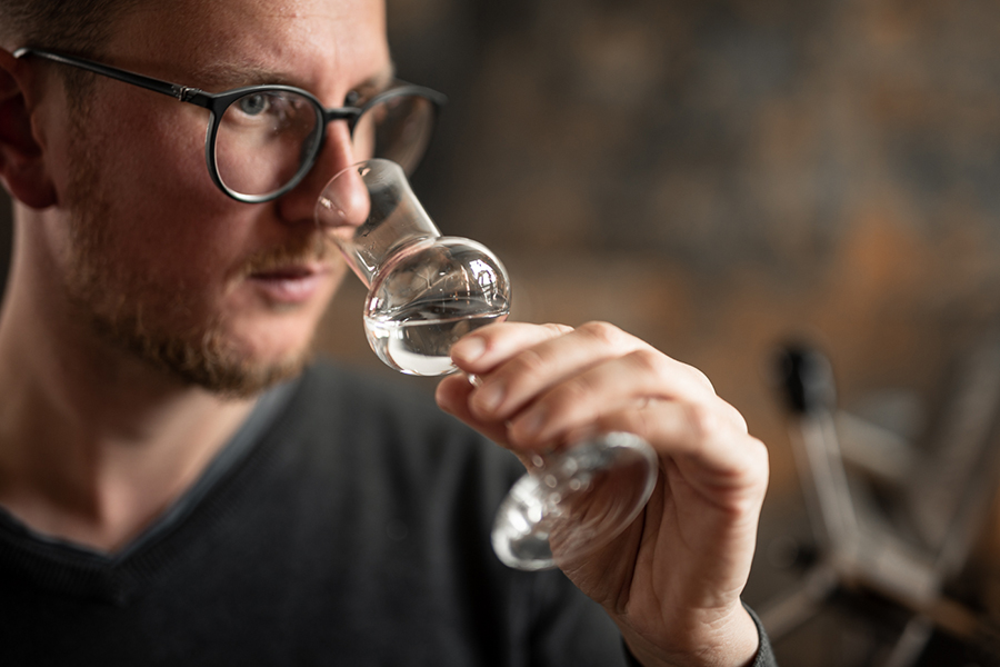 Er ist Ansprechpartner im Verkauf und findet für jeden Gaumen und Anlass das passende Destillat.