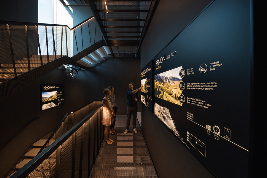 Visite guidate – percorso TERROIR: le visite con degustazione (4 vini della linea TERROIR) si svolgono ogni giovedì alle 16:00 e ogni sabato alle 14:30. L'autentica esperienza enologica e sensoriale si tiene nell'ala appena creata. Apprenderete aneddoti perspicaci e interessanti sull'importanza del terroir, sulle varietà delle zone di Cortaccia e sui suoi vini unici. È necessaria la prenotazione.