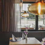 Il ristorante, accogliente e invitante, è suddiviso in diverse sale e combina lo stile alpino con accenti moderni nell'arredamento. Questo crea un'atmosfera accogliente che viene sottolineata da belle lampade, colori piacevoli e mobili raffinati. In estate, la pizzeria e il ristorante Hans possono essere apprezzati anche all'aperto.