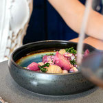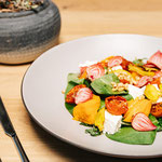 La cucina tradizionale altoatesina viene qui interpretata in chiave moderna, con piatti colorati e decorati in modo creativo come il risotto con cavolfiore marinato e gamberi o la zuppa di fagioli e crescione con guarnizione di pesce. Con dedizione e passione, Tobi crea sempre piatti unici che soddisfano tutti i gusti. Per lui sono particolarmente importanti i buoni ingredienti, preferibilmente regionali e di stagione. I dessert, le crostate e le torte preparate con amore dal fratello Florian completano perfettamente l'esperienza culinaria.