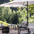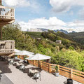 Le sale luminose e la terrazza panoramica con vista sulle montagne circostanti invitano a soffermarsi. Che si tratti di un aperitivo con stuzzichini creativi o di una cena rilassante, l'atmosfera è caratterizzata da un design elegante e dalla bellezza naturale. Il lodge è adatto anche per feste private come compleanni o matrimoni.