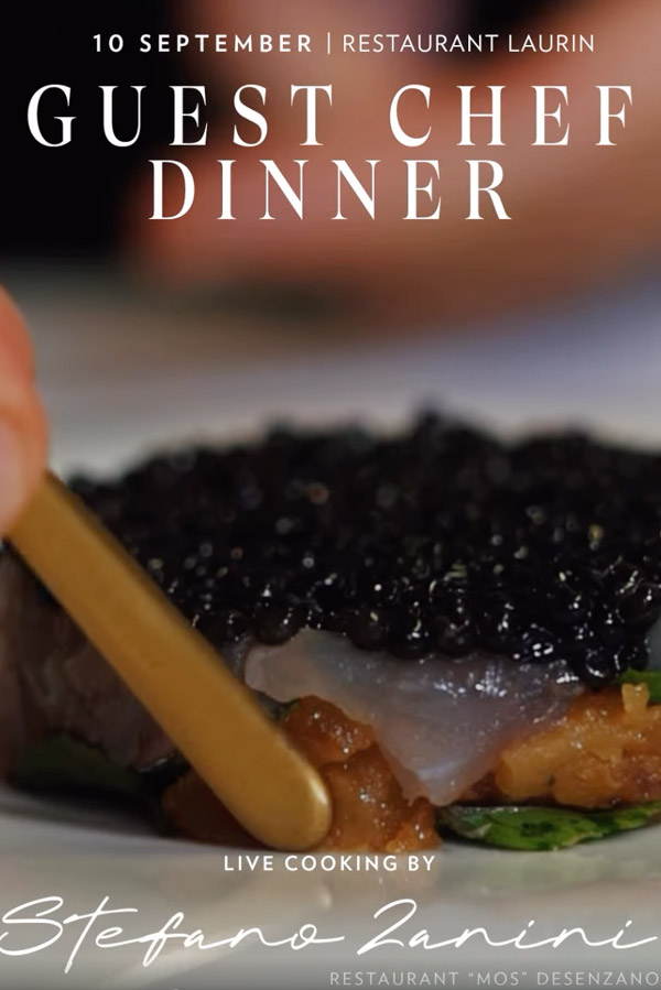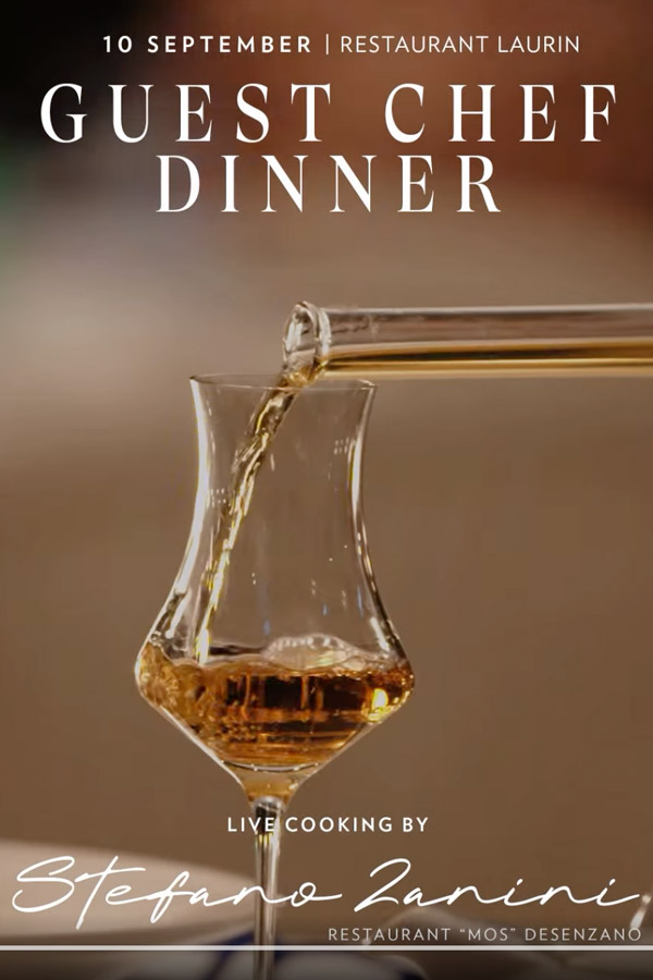 Am 10. September lädt das Restaurant Laurin zu einem besonderen Abend ein: Gastkoch Stefano Zanini vom Restaurant MOS in Desenzano präsentiert sein Degustationsmenü „Persone e Territorio“. Dieses Menü erzählt eine Geschichte von Aromen, die tief in der Kultur des Gardasees verwurzelt ist, die biologische Vielfalt würdigt und die enge Zusammenarbeit mit kleinen lokalen Produzenten hervorhebt.