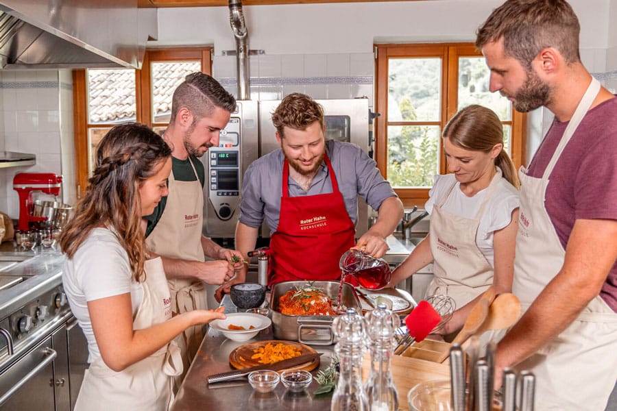 Die Roter Hahn Kochschule vereint die Vielfalt Südtirols mit erstklassigen Köchinnen und Köchen, die das Beste aus der bäuerlichen Küche herausholen. Hier wird die Verbindung von hochwertigen regionalen Zutaten und traditioneller Handwerkskunst erlebbar, während die Teilnehmer in einer authentischen Atmosphäre kochen und genießen.