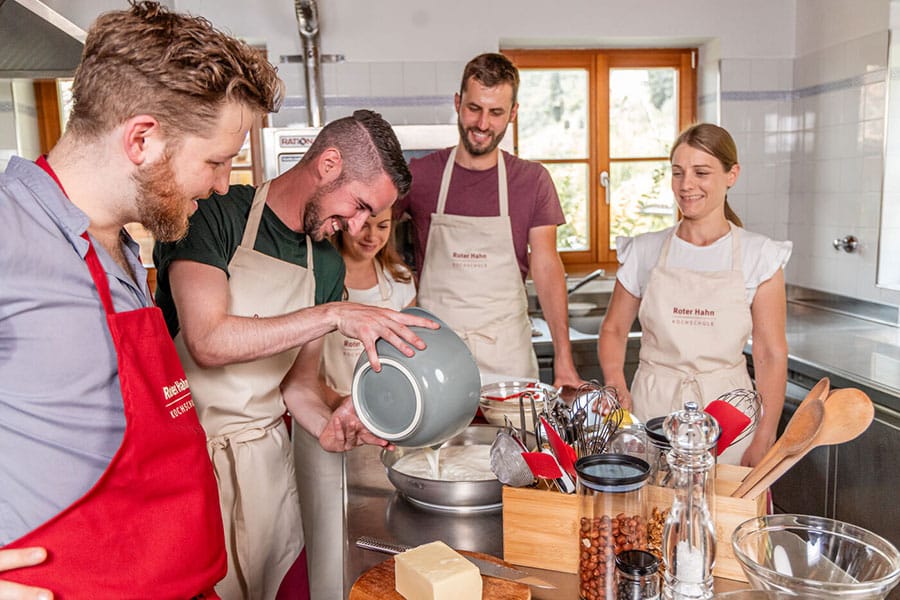 In der Roter Hahn Kochschule steht das Gefühl von Vertrautheit und familiärer Gemeinschaft im Vordergrund. Gemeinsam mit anderen Teilnehmern wird unter der Anleitung erfahrener Köche ein 4-Gänge-Menü kreiert, das im geselligen Ambiente genossen wird. Der Austausch von Tipps, Tricks und Rezepten macht den Abend zu einem unvergesslichen Erlebnis, bei dem Südtiroler Küche in ihrer ursprünglichsten Form gefeiert wird.